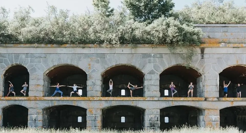 Fort Gorges, an abandoned Civil War-era granite fort surrounded by water, is one of the most historic and fascinating spots in Casco Bay – and also happens to be an ideal location for yoga.